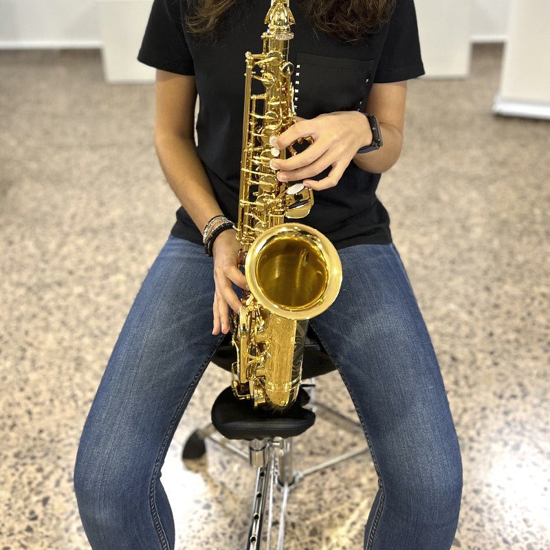 The arm allows players to position their instrument either directly in front or to the side, accommodating different playing styles and preferences. The Saxseat has been designed to be fully adjustable. Everything from the height of the seat to the angle and rotation of both the instrument arm and cup can be adjusted to suit your needs. This allows players of any size to play any size of saxophone with comfort and ease.